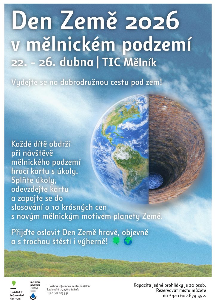 Přijďte si užít dobrodružnou prohlídku mělnického podzemí, vyzkoušet své znalosti a společně oslavit Den Země hravou a zábavnou formou. Těšíme se na vás!